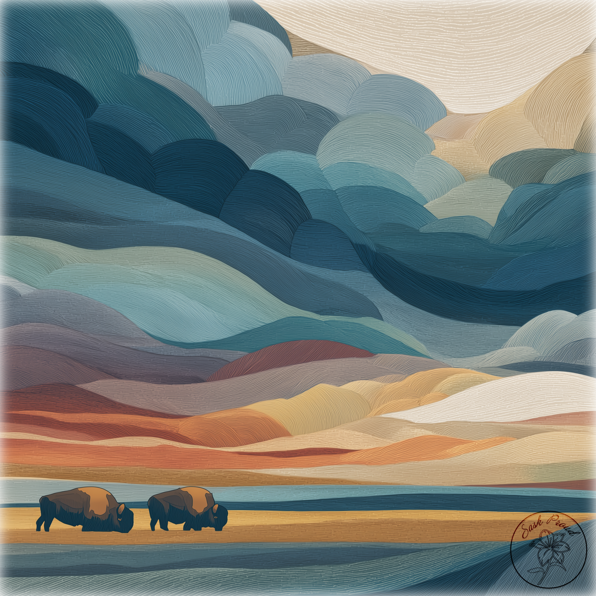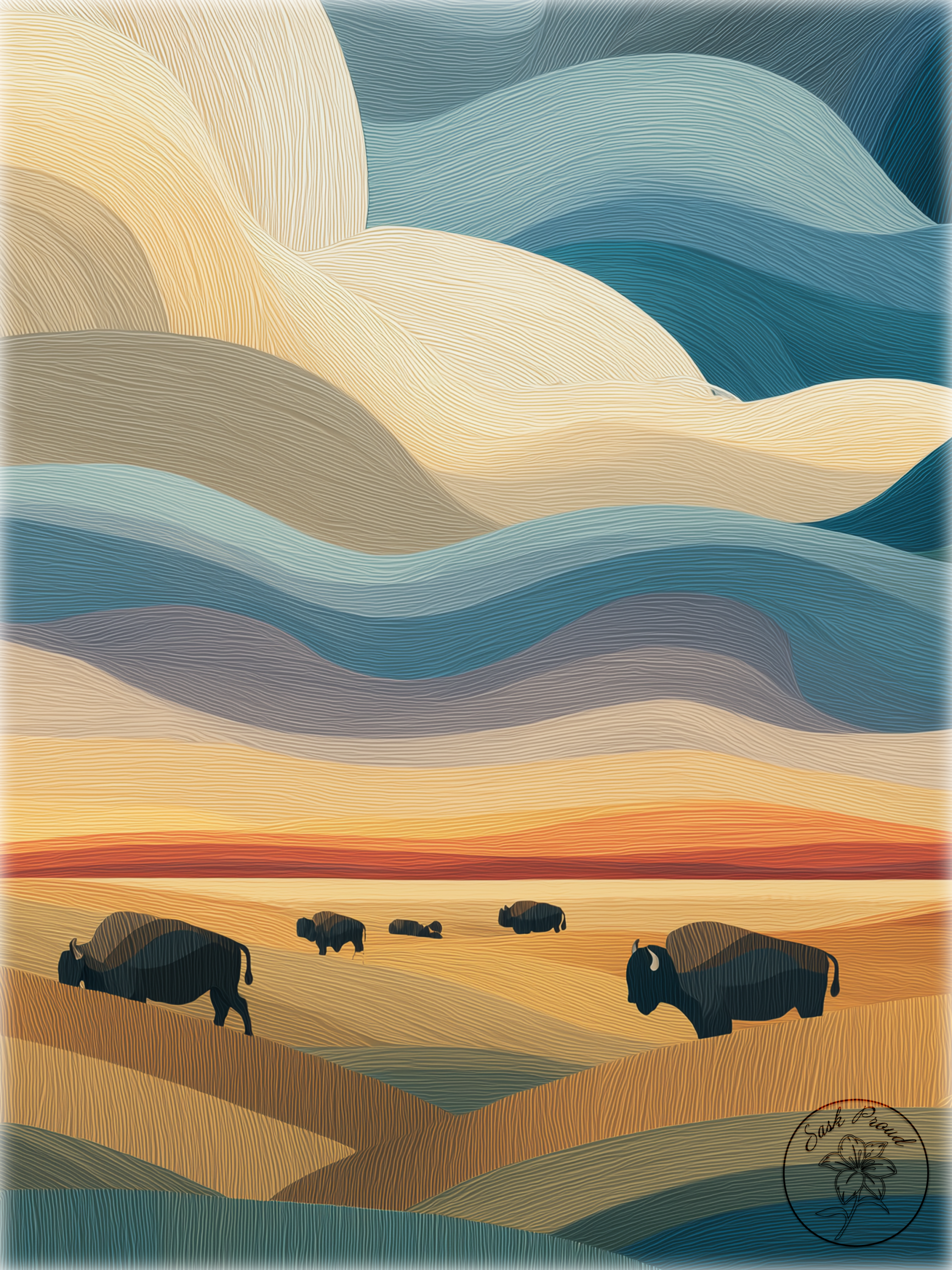 Prairie Flow Style is a contemporary digital art form that translates the living rhythm of the Prairies into flowing, contour-based abstraction. It blends modern vector precision with the emotional depth of expressionism, capturing the vastness, quiet motion, and subtle power of the land and its creatures.