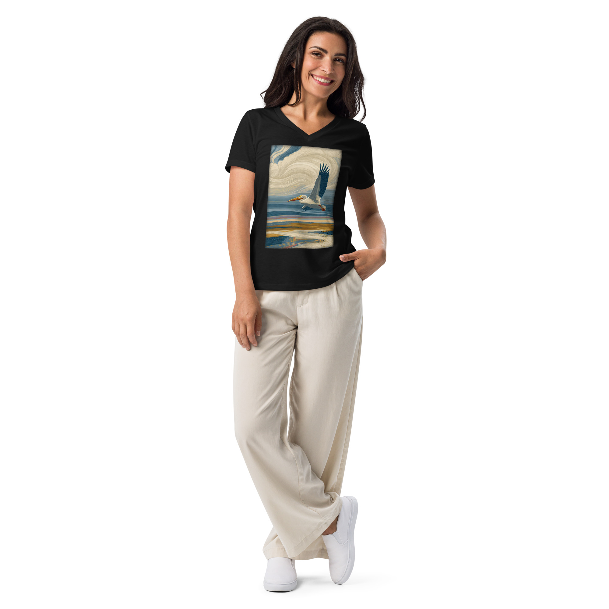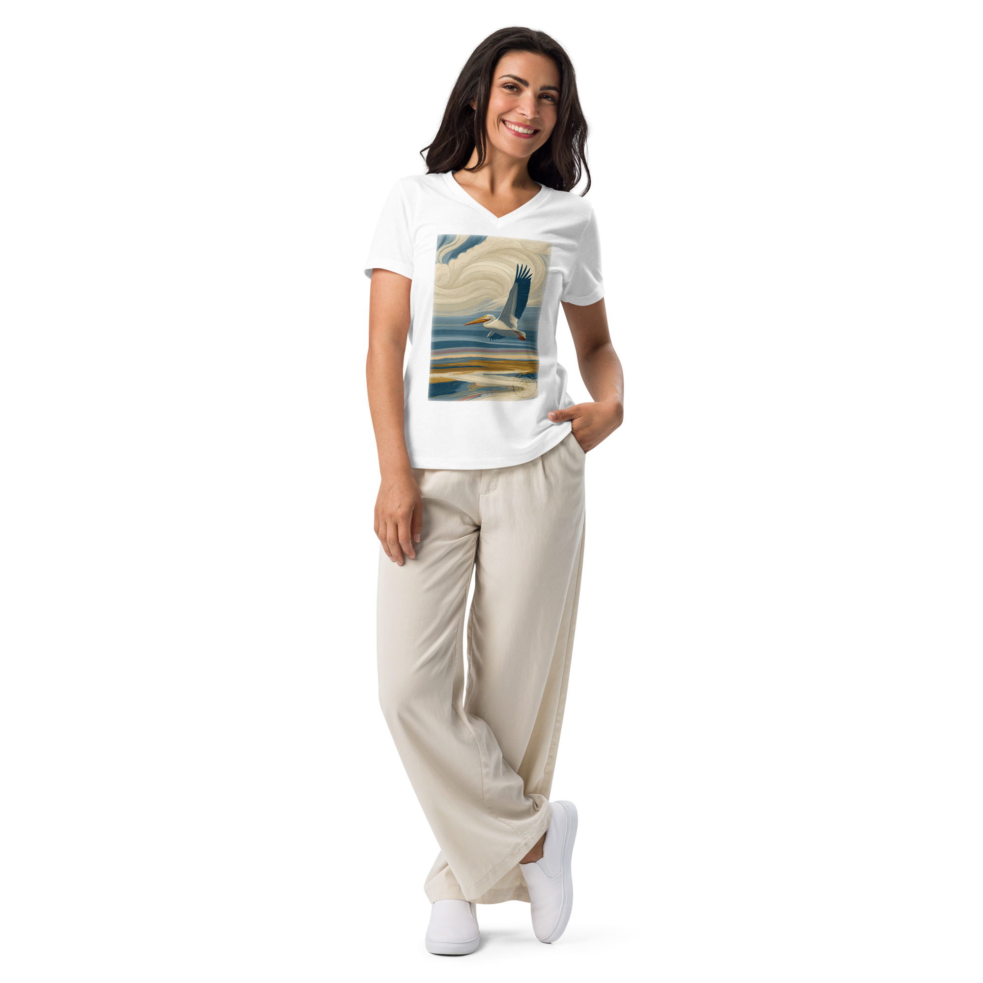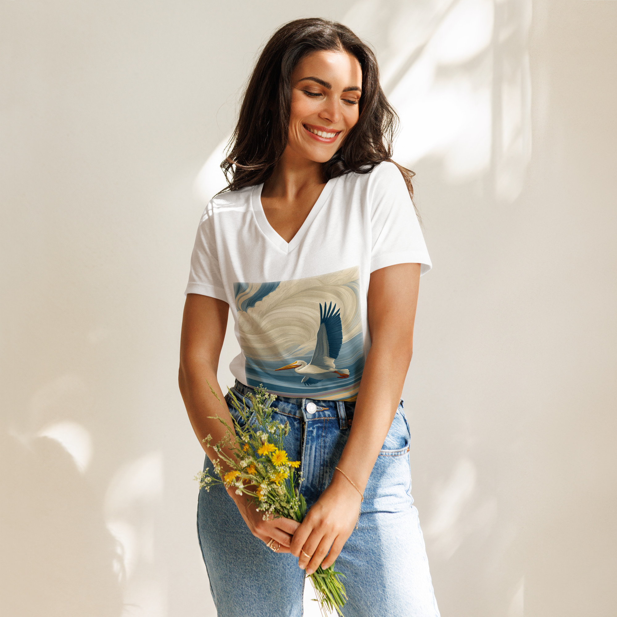Embrace ultimate comfort with this women’s V-neck t-shirt. Its soft fabric and relaxed fit make it ideal for a polished everyday look, with the V-neck adding a touch of style.