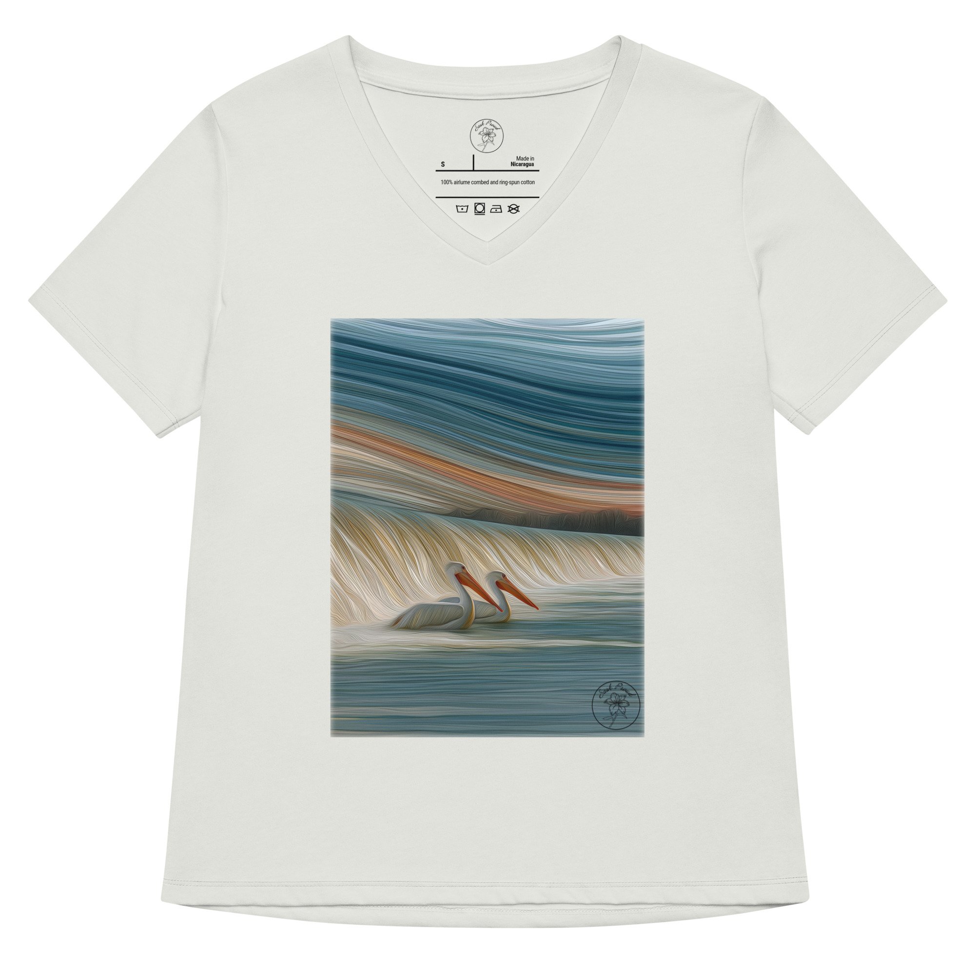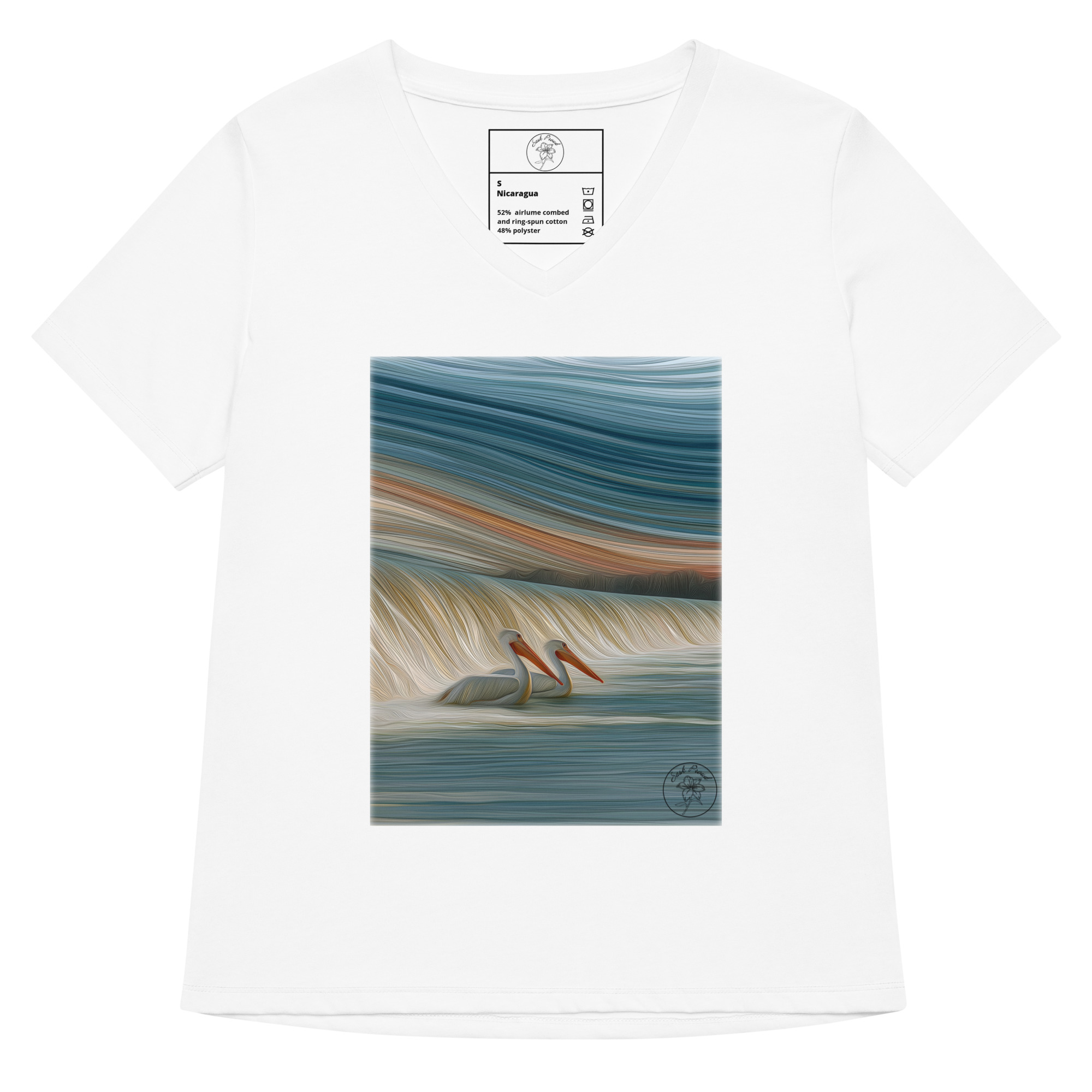 This women’s t-shirt offers a casual yet polished look for the office, informal outings, or lounging at home. Made from soft fabric that feels gentle against the skin, it features a relaxed fit and chic V-neck, giving a flattering silhouette. Design and order one for yourself, or start selling this t-shirt online. 52% airlume combed and ring-spun cotton and 48% polyester. Fabric weight: 4. 2 oz. /yd. ² (142. 4 g/m²). Yarn diameter: 32 singles. Soft fabric. Relaxed fit. V-neck. Side-seamed construction. Tear-away label. Blank product sourced from Nicaragua. This product is made on demand. No minimums.